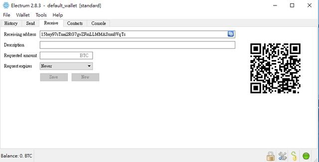 5.輸入Byteball地址後,BOT將要求輸入要連結的比特幣錢包地址,以便簽名確認。開啟Electrum,到 'Receive' 複製地址到BOT。