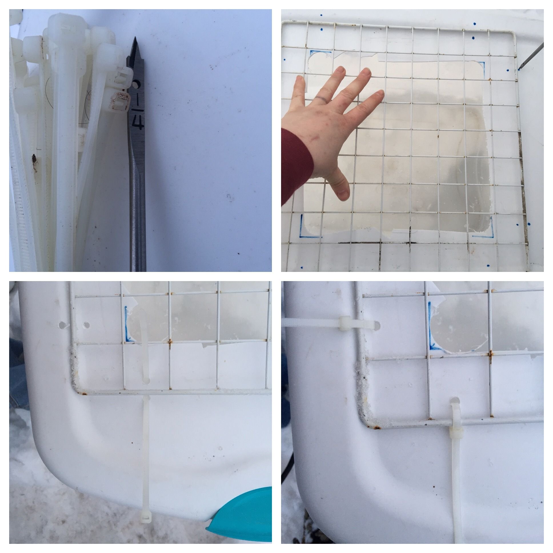 Next you are going to realign the wire square with the opening and mark where you are going to drill holes for the zip ties.