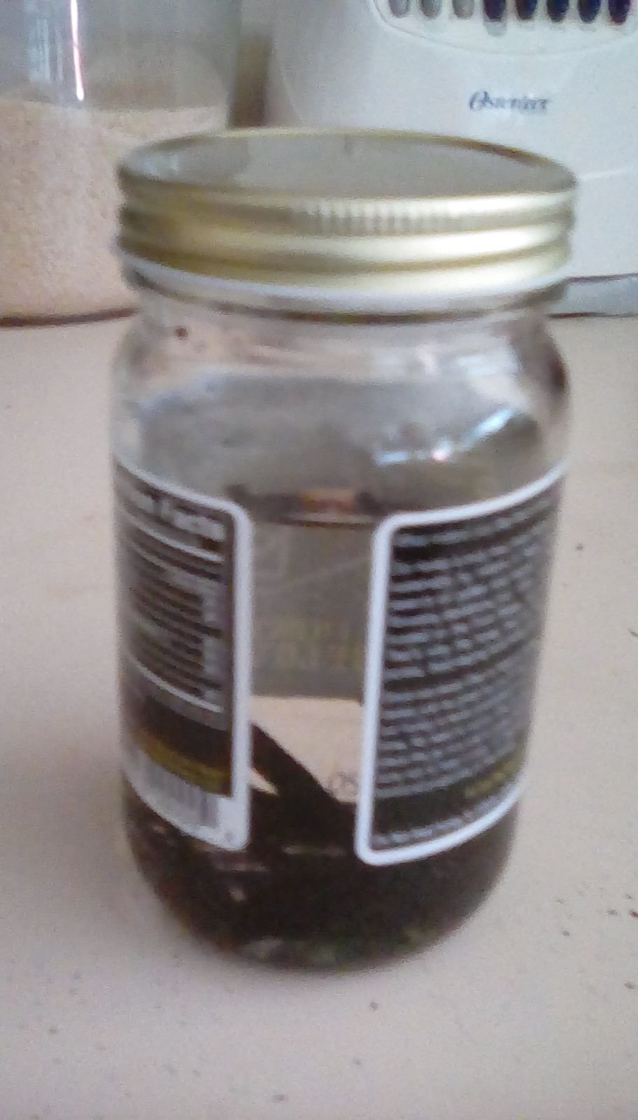 Put the bent or pieced beans in one cup (8 ounces) of vodka in your jar and lid it: