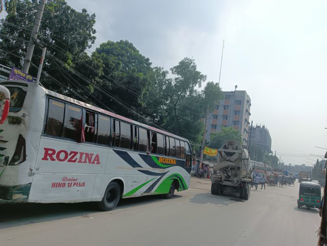 Since I have to reach the institution very soon, I have many activities left today. So I left early in the morning, however, I am waiting for the bus on the road. Various types of vehicles are moving on the road, I am standing on the side of the road at the bus stop. Here many people are also standing as passengers to go to the destination. After about 15 minutes, the bus arrived at the place I want to reach. So I immediately got inside the car and sat down. Since the seats at the front of the car were full, I came to the middle of the car, there are empty seats here. So I sat down on the empty seat and captured a picture of the scene in front with my mobile phone.
