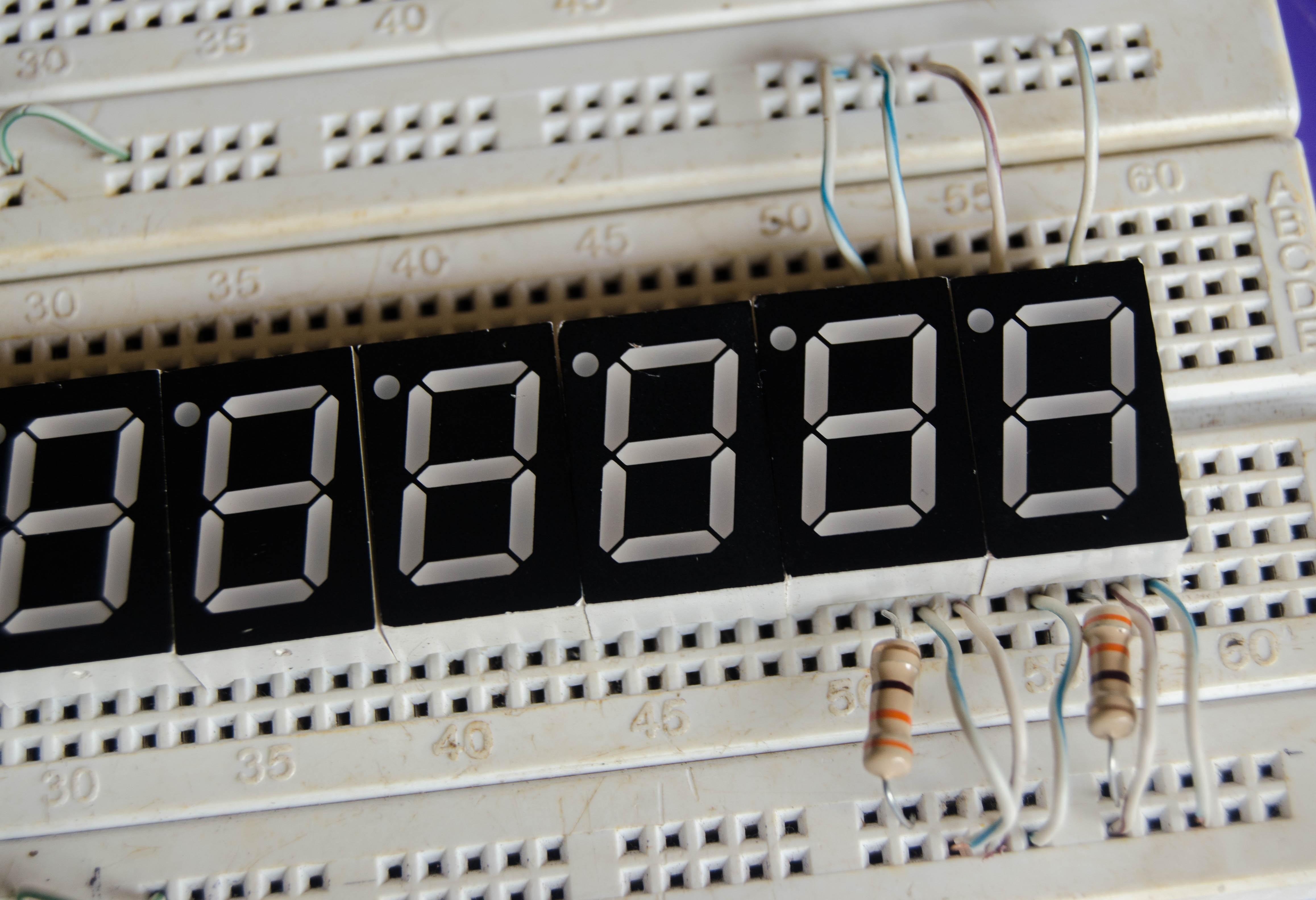 Make use of the resistors,in order to limit the amount of current that goes into the segment and by that preventing the seven segment for getting damaged, so I will be using a calculated resistor of 330 ohms.