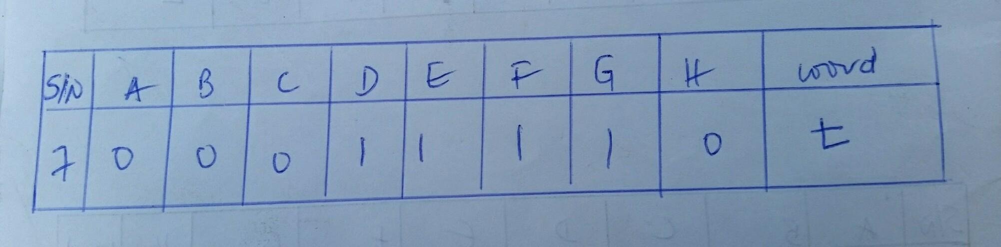 Using the truth table of column t, making connection of all "1" and no connection for "0".