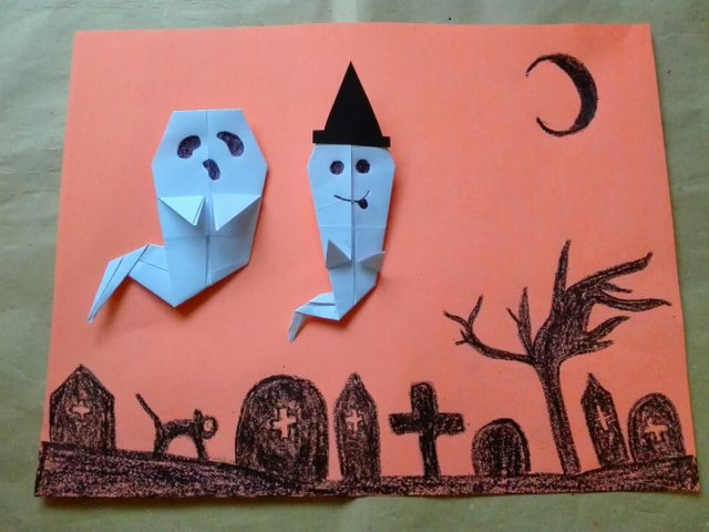 Ghost Origami for Halloweenawesomenyl (69)in #howto • 9 years ago (edited) Hi, guys today i made ghost origami, it is very easy to make you can make these less than 2 minutes! :) Draw, and finish! there you go. Hope you like it! #art #steemit #life