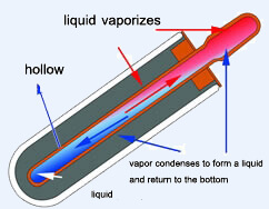 Heat Pipe system is equally efficient and has the great advantage that the water does not enter the glass tubes, thus avoiding all the inconveniences of the previous model. Inside these vacuum tubes is inserted a special copper tube, very thin, with a liquid inside.