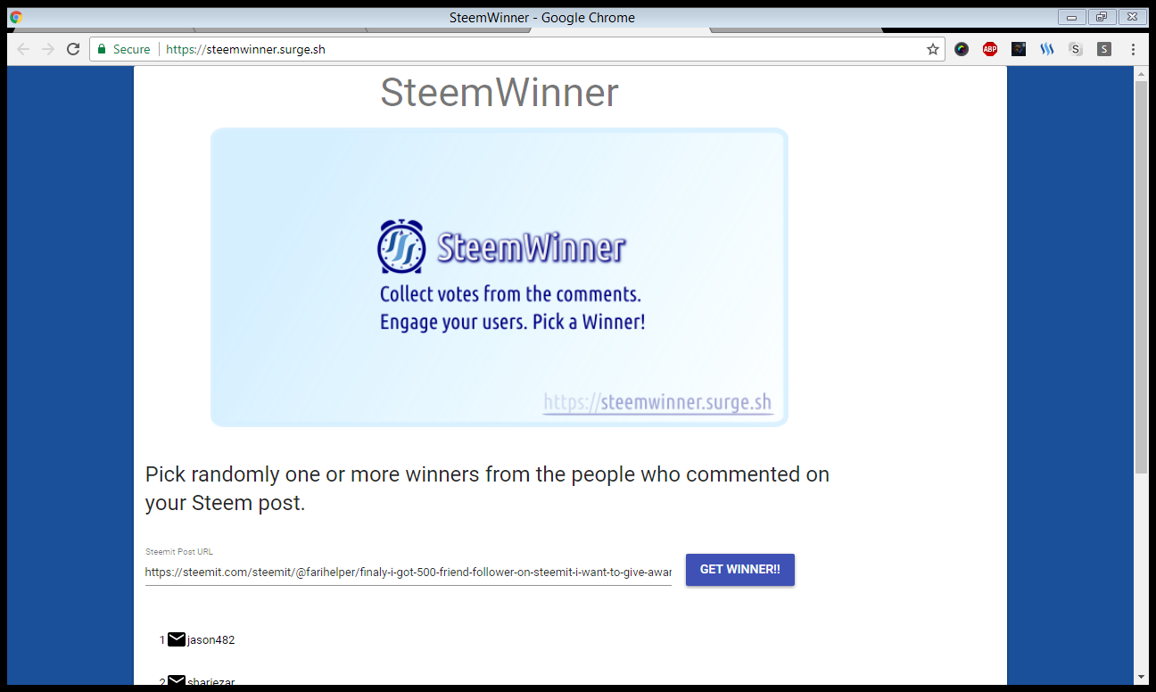 Before leaving my post :( IF you like this random selection of winner tool so don't forget to up-vote