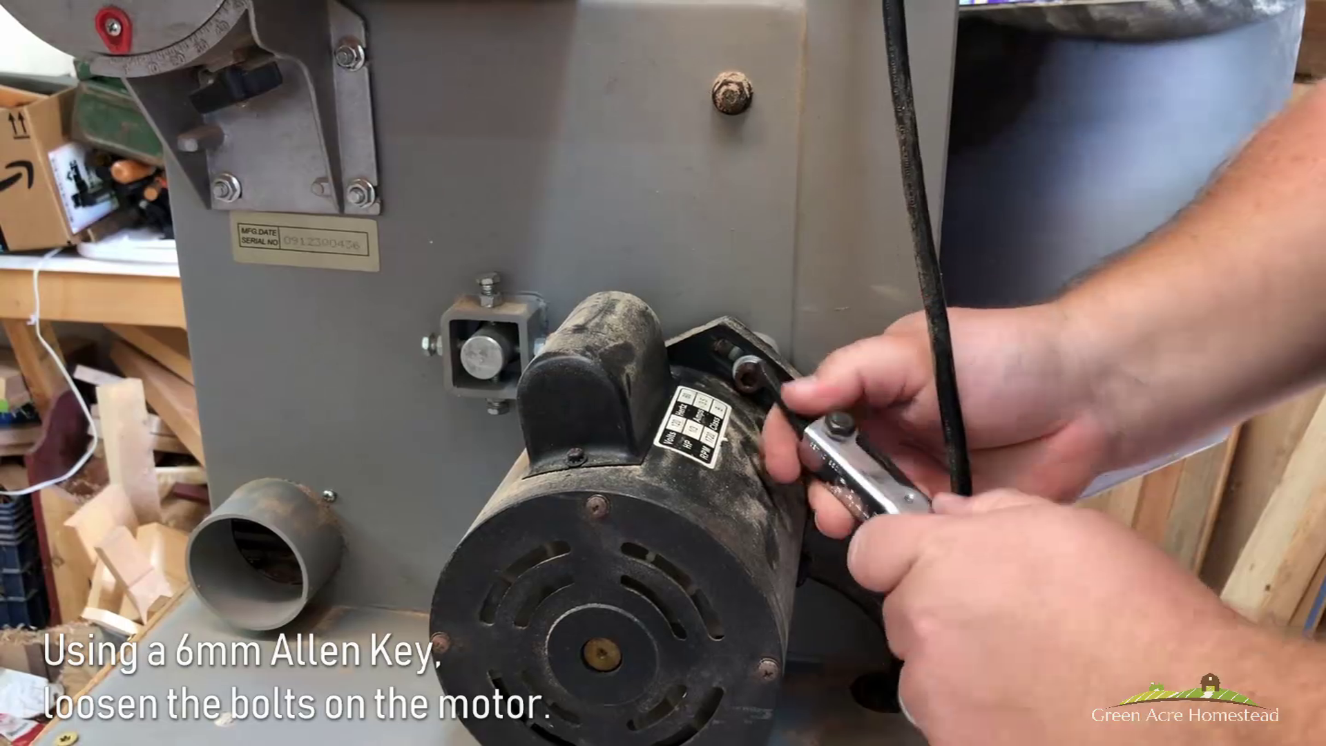 Using a 6mm hex wrench, loosen the two motor mount bolts to move the motor and fit the belt onto the pulley.