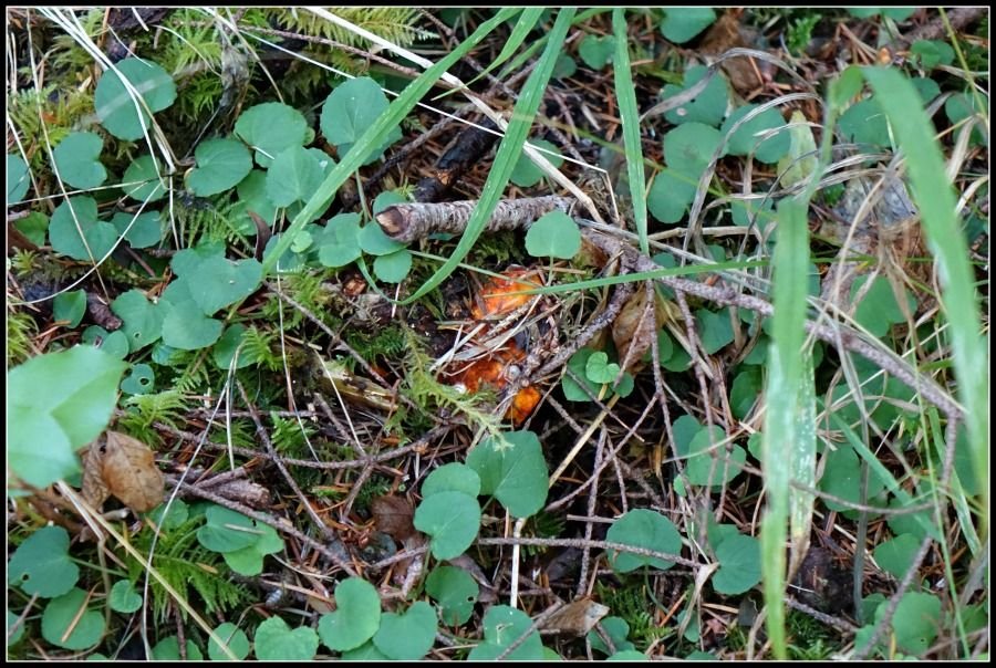 But you have to look closely! A lot of times, these mushrooms don't even get above the forest floor. They are just "shrumps" or mushroom humps pushing up the debris. At least they are brightly colored, so seeing any part of them is good enough for a closer look.