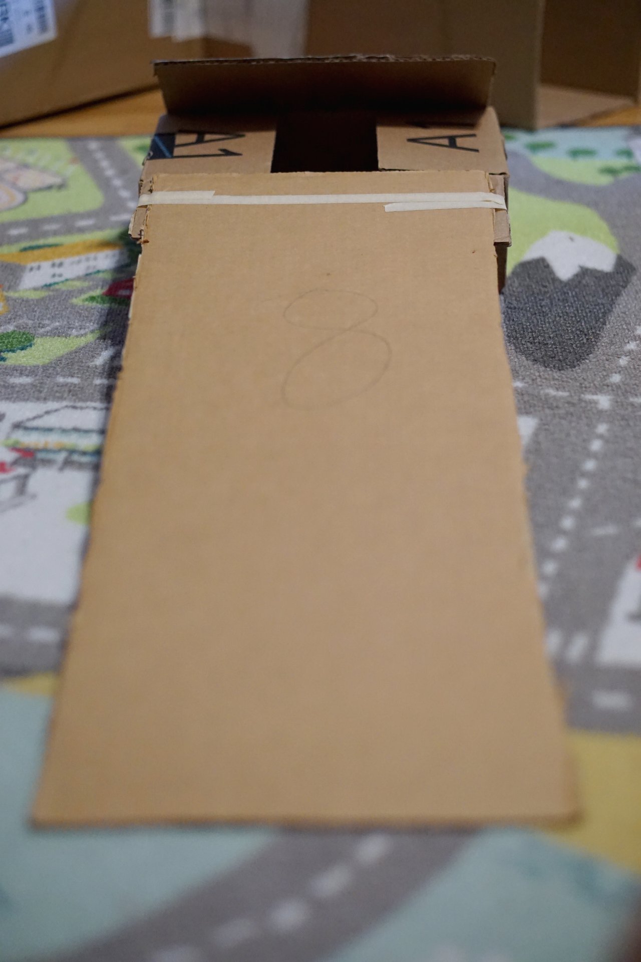 Alright, so the other ones he made were okay. One was a piece of cardboard taped to another with a hole cutout, so basically, as long as you hit it through the hole, it was a win. The best was a small flat box, with an entrance and exit cutout. In the middle, was a piece of flimsier cardboard, that you had to just ram through.