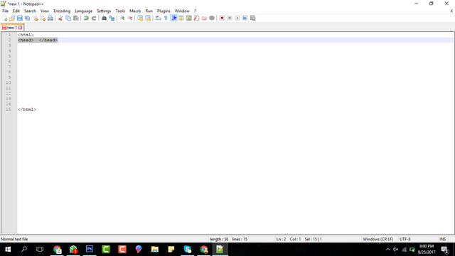 Then add a tag under the html tag,The tag that you added is "head" with brackets,then close the "head" tag by using brackets and / "head"...