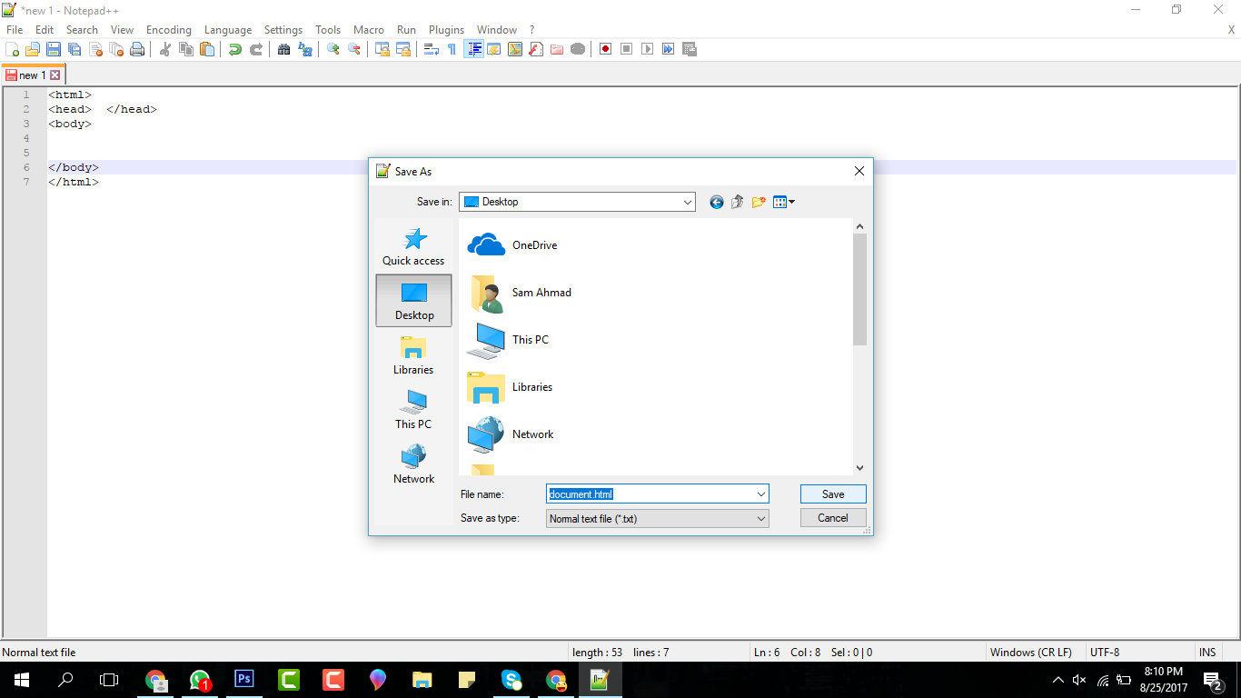 Then final step is preview then you save it on your desktop,By saving this code you go to file and click on save As,And save it And this document name with.html,And save it....