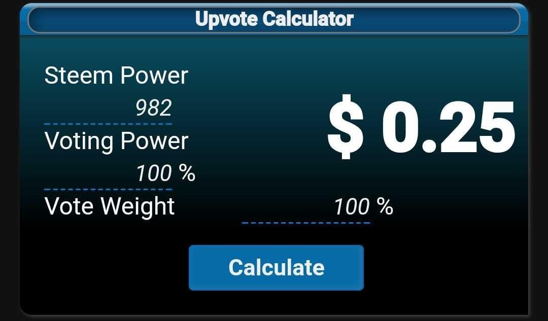 Tools ini juga dilengkapi dengan kalkulator steem, dimana cara penggunaannya juga begitu simple, anda hanya perlu mengklik icon kalkulatornya dan setelah itu hanya perlu memasukkan nilai Steem Power yang kalian miliki, dan klik calculate, maka dengan otomatis tools ini akan menunjukkan nilai vote yang anda miliki.