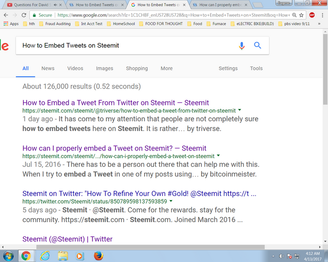 Current Articles as of April 13, 2017 on Steemit regarding Twitter embedding via Google Search