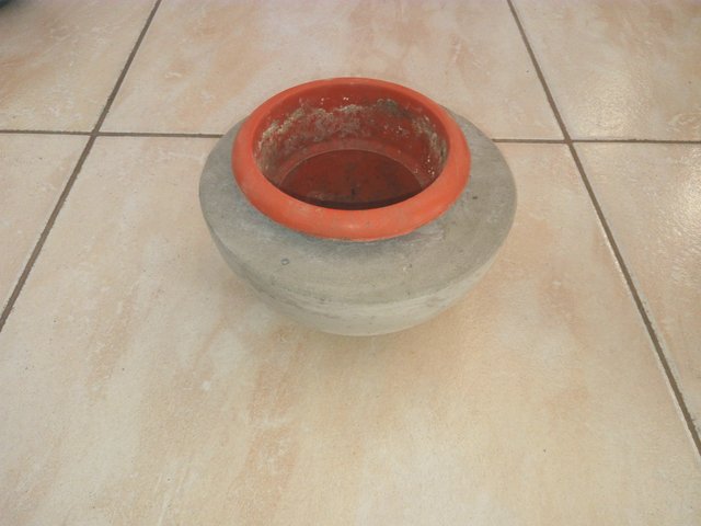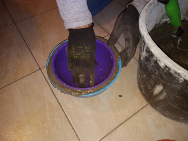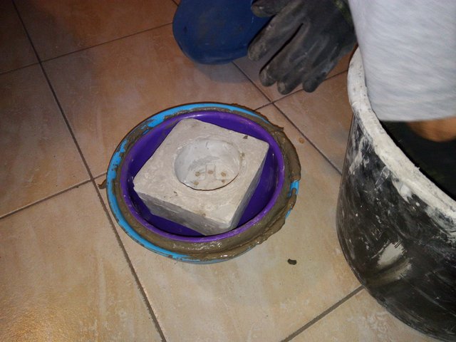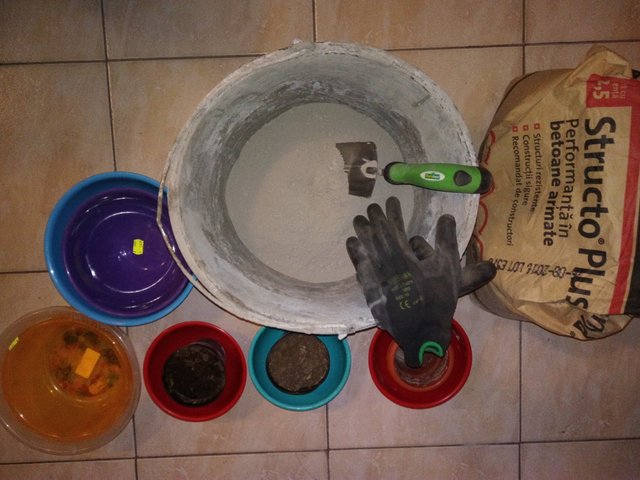 Next, put the cement composition into a plastic bowl. Above you put another plastic bowl to make the shape you want and on top of it you have to put something heavy to mantain the form. It must stays like this for 20 hours.