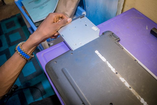 Neatly unscrew the back of the PC and carefully remove any component that needs to be removed. In this case the DVD drive needs to be removed.