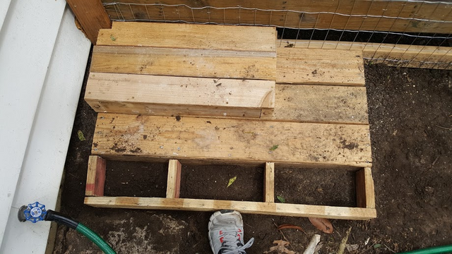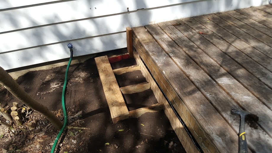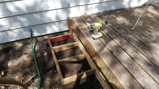 Then I finished up with the rest of the tread board pieces. Then to sure up the step and add support with some loose fill dirt.