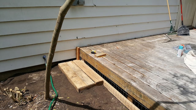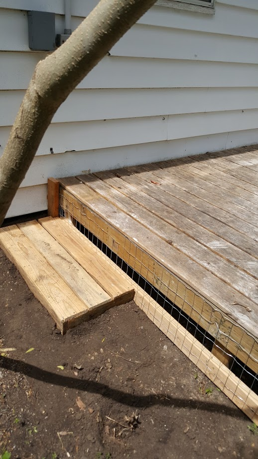 I'm a short person so I appreciate a nice set of steps. lol. Looks good.Smart of you to put up the wire to keep animals from getting under the porch.