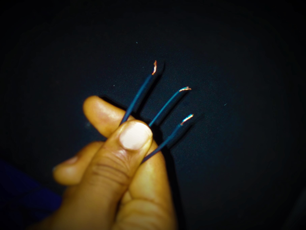 peel off a small part of the insulating wire at the end of all three wires so you can clearly see the conductors in them