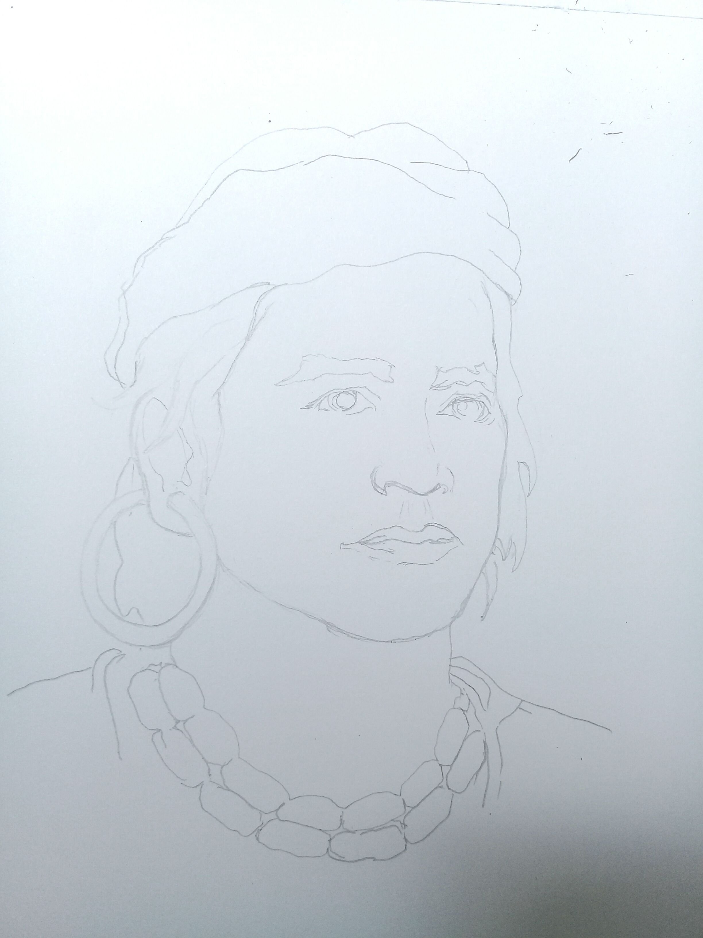 The first thing I did was to sketch the shape of the face using pencil. I first started at the eye of Datu Lapu-Lapu. And then followed by the other parts until I finished it thoroughly with pencil.