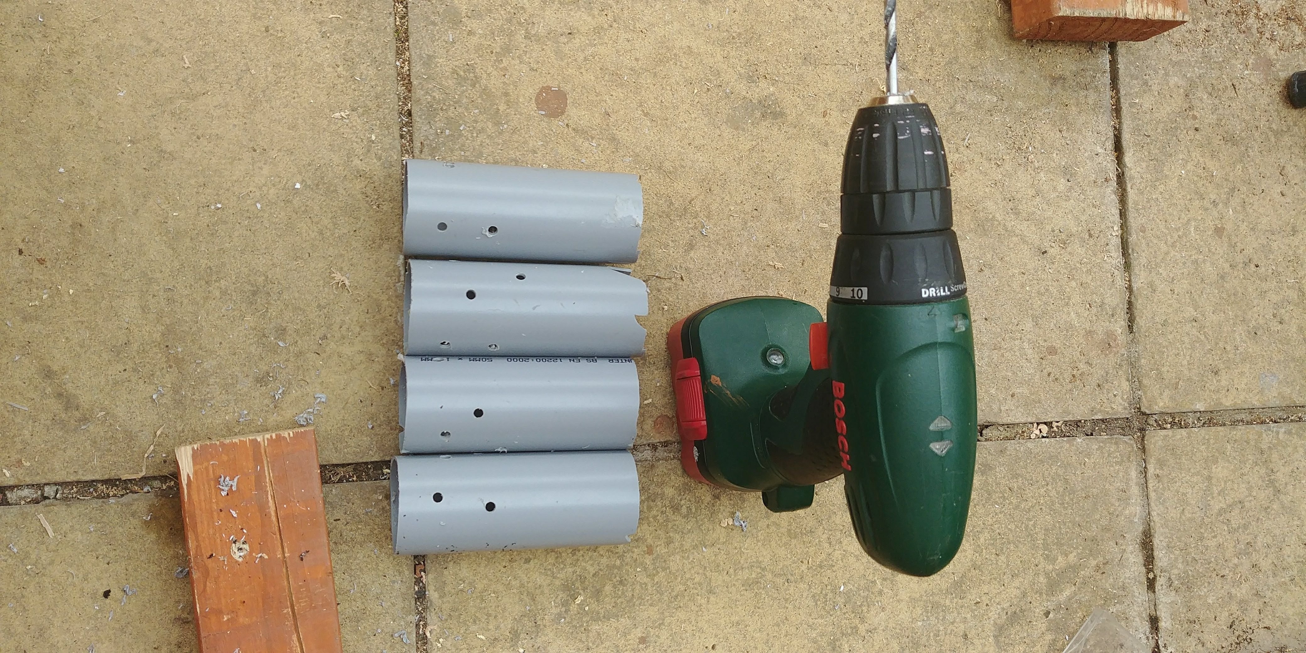 The hardest and most annoying part of this project was cutting the holes in the pipes.