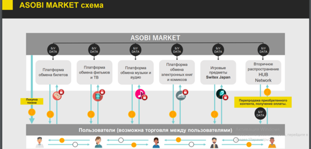 Asobi Coin, Blockchain tabanıyla oluşturulmuş dünyanın ilk Dağıtılmış İkincil İçerik Platformudur. Asobimo DApps platformu, ikincil piyasada dijital içeriği tüm taraflar için değerli bir varlık haline getirecek ve minimum maliyet ve sürtünme olmaksızın güvenli bir ticaret deneyimi sağlayacaktır. ASOBIMO şirketi, dünya çapında 600'den fazla çalışanı ile 15 yılı aşkın bir süredir online oyunlar geliştirmektedir. Dağıtılmış ikincil piyasada dijital içerik ticareti yapabilen blok zinciri projesi başlamıştır.