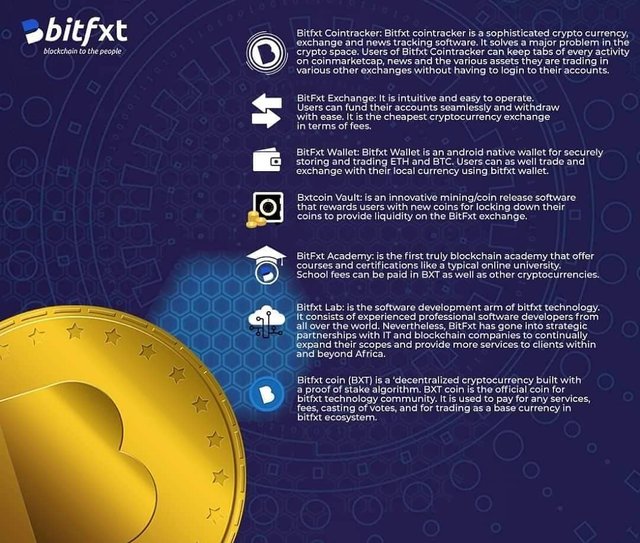 BITFXT innovates and develops Bitfxt Wallet electronic money security where users can keep all their Digital Assets together. Wallet is linked to a personalized debit card that user can spend at any retailer intentionally accepting a debit card and allows them to withdraw cash through an international ATM. Token information and technology as well as cryptocurrency through the bitfxt exchange. Bitfxt provides opportunity for Investors and traders to make commensurate profit in the crypto market; it is also a win, win market system with security, trust, transparency and accountability.
