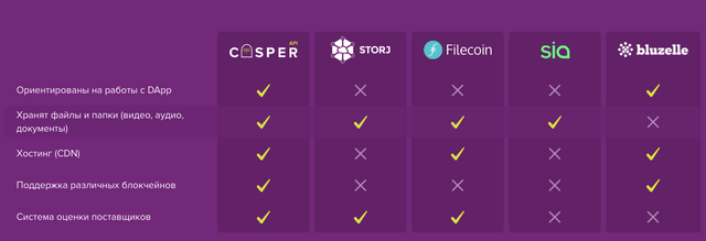Стоит обратить внимание, что проект имеет огромный потенциал и коммерческий успех Casper API вполне возможен, что позволит хорошо заработать инвесторам. Начиная от детально продуманного маркетинга во всех возможных социальных сетях, заканчивая резервным фондом для поддержания устойчивости системы. Каждый участник экосистемы связан между собой и заинтересован в развитии проекта. Стоит отметить, что Casper API не просто идея в которой присутствует виртуальная ценность, а вполне реальный сектор экономики объединяющий множество провайдеров с огромными мощностями, способными хранить и передавать миллионы терабайтов информации. В отличии от конкурентов Сasper API имеет ряд преимуществ: