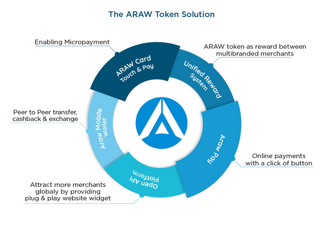 Ethereum Blockchain technology and e-commerce and payment ecosystem. The current ARAW and its unique infrastructure offer e-commerce companies and service providers standardize reward programs and expose ordinary people to the crypto-currency economy. Our solution is completely transparent and aims to make crypto currency affordable for ordinary people. From the customer's point of view, there will not be any normal changes - for example, one of our offers includes Araw Touch & Pay cards for use with daily micro-payments.