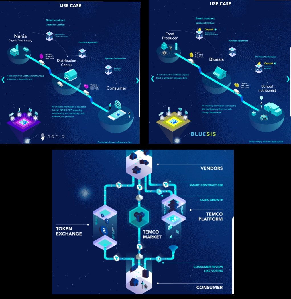 Here is a great use case model of TEMCO Platform demonstrating the process from their partnered firms Nenia and Bluesis. These two are both leading food producers on Korea and now tied up with TEMCO. If you want to know the full elaboration of TEMCO platform, you might want to read their well versed and concise whitepaper: https://docsend.com/view/eiawynp