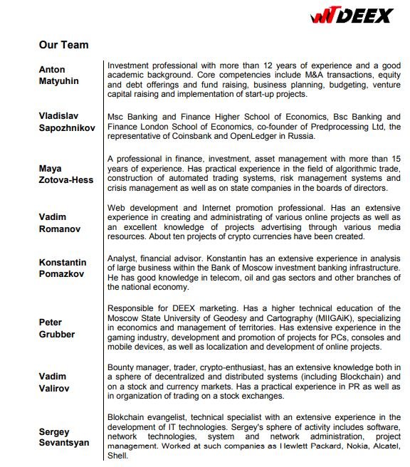 i. DEEX.CORE: This is a basic token which gives an opportunity to receive income from the exchange's participants activities through direct or indirect participation in the work of the exchange and projects implemented on it. Other words it is a mutually beneficial and low-risk investment in your own exchange.