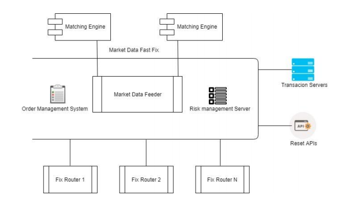 The KuBitX Exchange is designed to operate at low latency, high throughput, and maximum uptime. By incorporating geo-replication in its architecture, the exchange is built to be fault tolerant, ensuring that the platform delivers a seamless and uninterrupted trading experience to its users. Below is a high-level abstraction of the exchange architecture showing how the different systems within the exchange are connected logically.