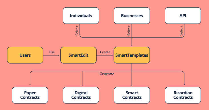 Our platform dispenses with the boundary between legal and smart agreements and not only provides tools that revolutionise how Smart Contracts and Ricardian Contracts are built, but also aims to improve conventional legal processes and agreements as they exist today.