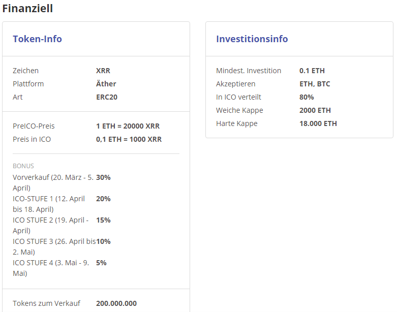 Preis PREICO 1 ETH = 20000 XRR