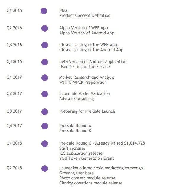 The maximum goal (hard cap): 55 000 ETH Minimum purchase amount: 0.1 ETHTGE will have two stages: pre-sale and main sale. At the pre-sale stage, YOU tokens are offered only to whitelisted buyers, whereas during the main sale tokens can be purchased by anyone.