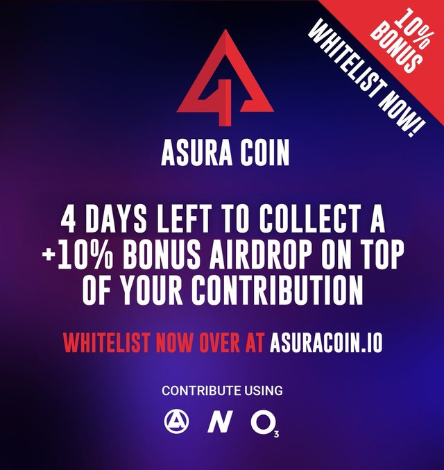 Only 4 Days left to collect a 10% bonus airdrop for all Asura Coin ICO Contribution!