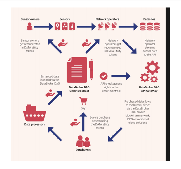 Databroker DAO is the very first marketplace based on blockchain technology, where the connection of sensor owner with the purchaser will be done directly without any involvement from the third party. This platform will utilize the existing infrastructure of telecom providers for operating sensors connectivity based on SigFox, GSM, LoRa or via the gateway of sensor owner. Precisely, the Databroker Dao can be linked to a secondary market of an IoT sensor data which could be very beneficial for the data industry.
