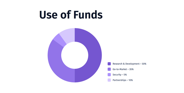Distribution of proceeds: 50% will be spent on development and research, 35% will be given to marketing, 5% - on security, 10% - will spend on partnerships.