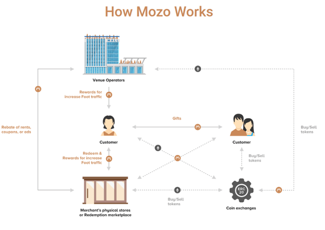 Mozo bertujuan untuk membangun platform universal untuk menarik pengguna ke toko fisik, memungkinkan mereka untuk menambang dan menggunakan koin Mozo saat menggunakan aplikasi Mozo dan menemukan produk baru dan menarik.
