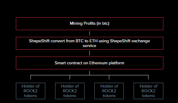 Payments to investors will be carried out with the help of smart contracts. The profitability of investors is calculated individually, it depends on the number of shares you have and the rate of profitability of the current mining. Owning tokens ROCK2 - you own shares in the company Rock Mining.