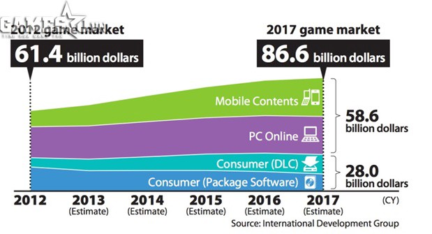 Game industry is developing fast and strong in the coming years are the premise for Egretia development. The chart below shows the trend of game development over the years is very strong: