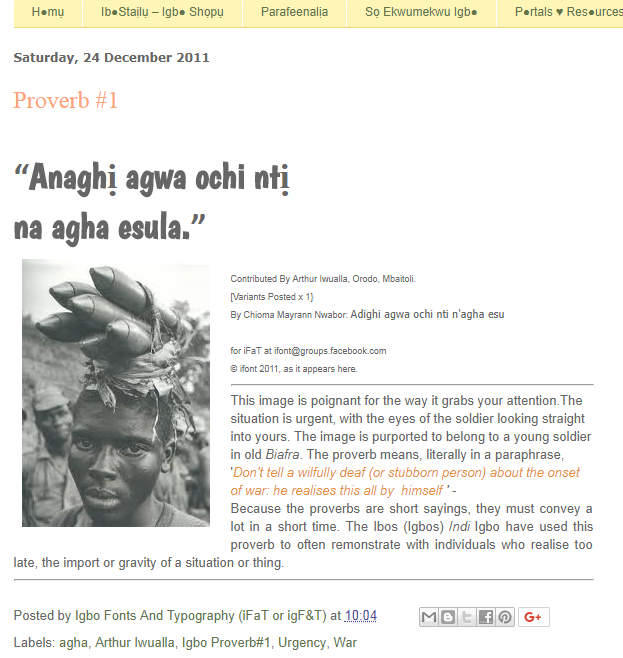 Here's me trying to put out some pointers to good old Igbo wisdom.
