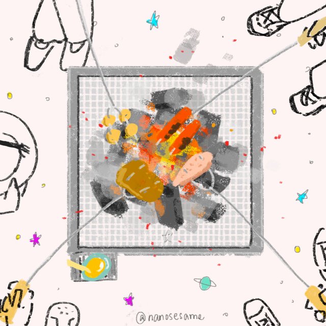 我超级enjoy自己动手烤烤串的感觉呢 ~这幅图我认领啦,有机会我来写写看【这些年我和烧烤的爱恨情仇】😂