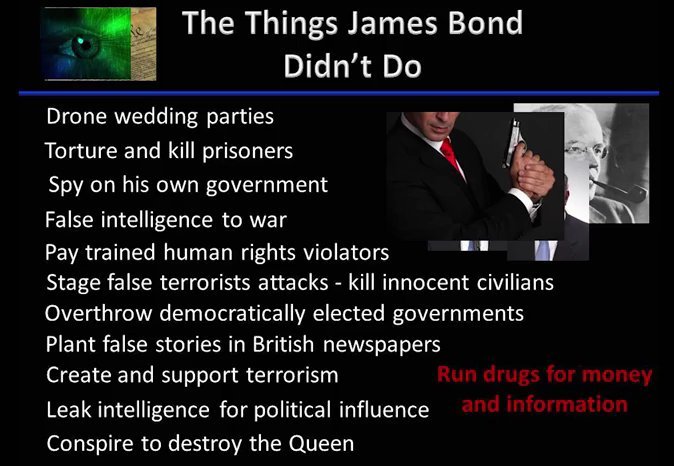 “CIA, you are no James Bond.”, Shipp contends without question, adding that they [the CIA] run drugs for money. They have infiltrated the DEA (Drug Enforcement Administration) long ago and have been involved in drug running for years, Shipp says concluding the section.