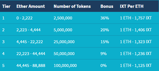 A total of 100,000,000 tokens have been allocated to the ICO. The 1st Tier's bonus is 36%, therefore the first investors will receive 36% more tokens than the last ones who will take without a bonus.