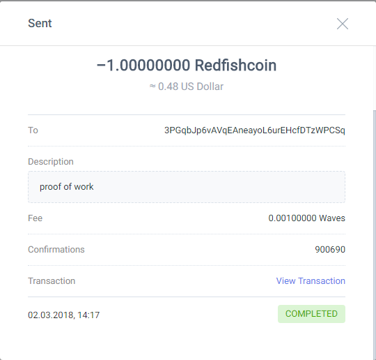 Amount: 1.00000000 Redfishcoin (5sU8dF7DyN7dKN4NiFTtVC5shqthSgTEuvKUu2iusyS2)