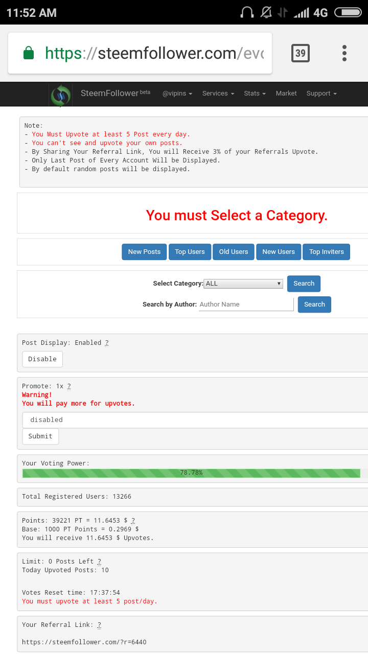Hi friends I hope your enjoying and learning many things on steemit platform.this post is regarding how to increase your earning with the help of steemfollower lets I will explain you how you can join and maximize your earning with the help of this website. To join this website https://steemfollower.com/?r=6440 click on link. After that you will be redirected to steemfollower website and sign up page just put your steemit username and password. After that you are login into your steemfollower.com website it looks like this after that you got this page just tab on service tab. The service tab looks like this