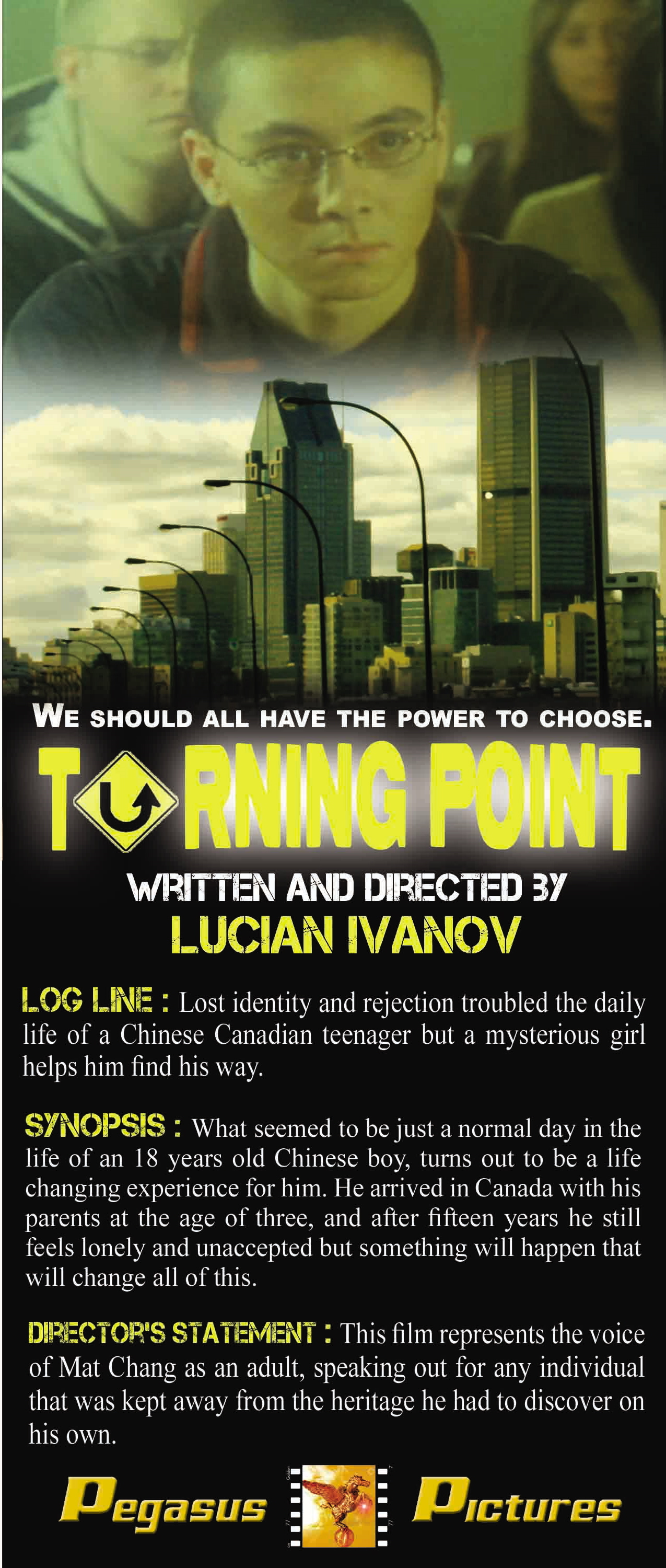 "Turning Point" 2009, did fairly well, premiered at The Cannes Short Film Corner 2009 and was picked up by The National Film Board of Canada. (Oops, you've just found out my real name from the poster ;)!