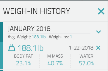 It only makes sense that I should contribute to the Health, Fitness, and Yoga forums on Steemit, owning a business in the market. I'll be honest, the past year was not my best for my own fitness levels. That being said, a series of posts that will be coming soon will be documenting my journey to get back into shape this year, working up to my wedding in September. This series will cover my training routine, diet, and key metrics of my progress using a scale that gives Weight, Body Fat, Muscle, and Water statistics. Here are my starting metrics.