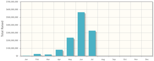 Total Capital Raised from ICOs in the first 7 months of 2017