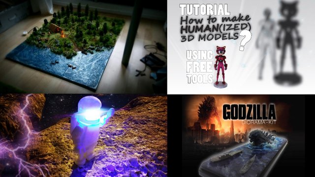 - 3D models (printed & painted, designed by me and free to download and print on your own 3d printer or you can upload them to any online printing service and get them delivered to your home.)