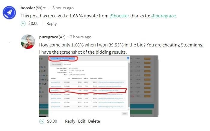 Hi @puregrace, booster was one of the very first bots and is run by some very respectable members of the Steem community so I'm not going to immediately remove them from the site at this time, however I will talk to them and try to make sure that any missed votes get refunded.